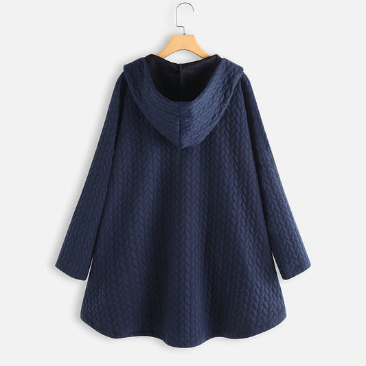 Pure Color Hooded Twist Cotton Thick Coat