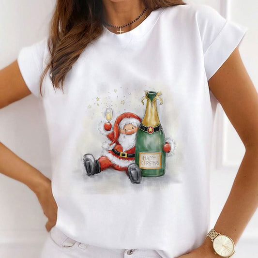 HAPPY Christmas Women White T-Shirt F