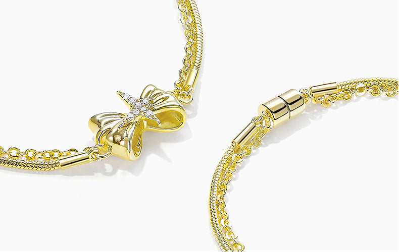 Creative design: Romantic double chain of bow knot, bright starlight carving in the meantime, full of moving style.